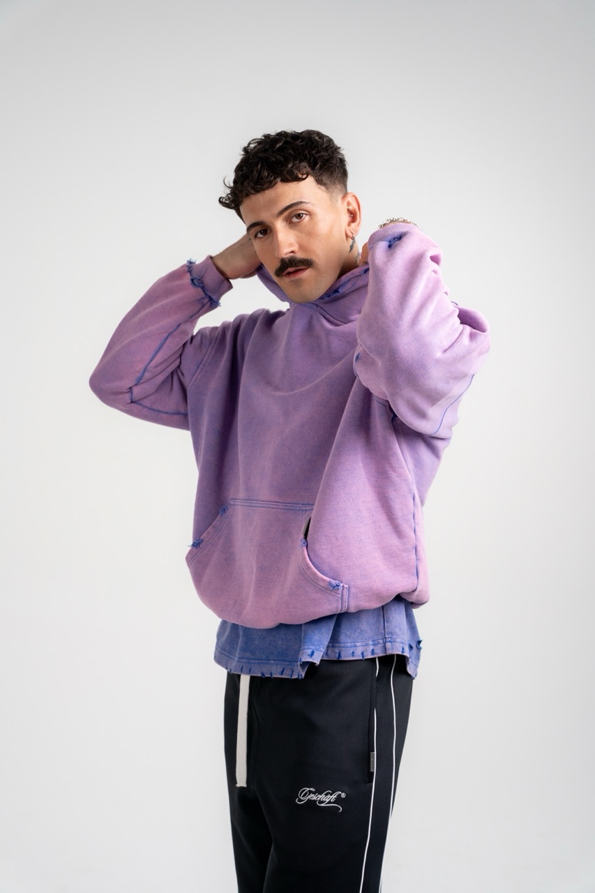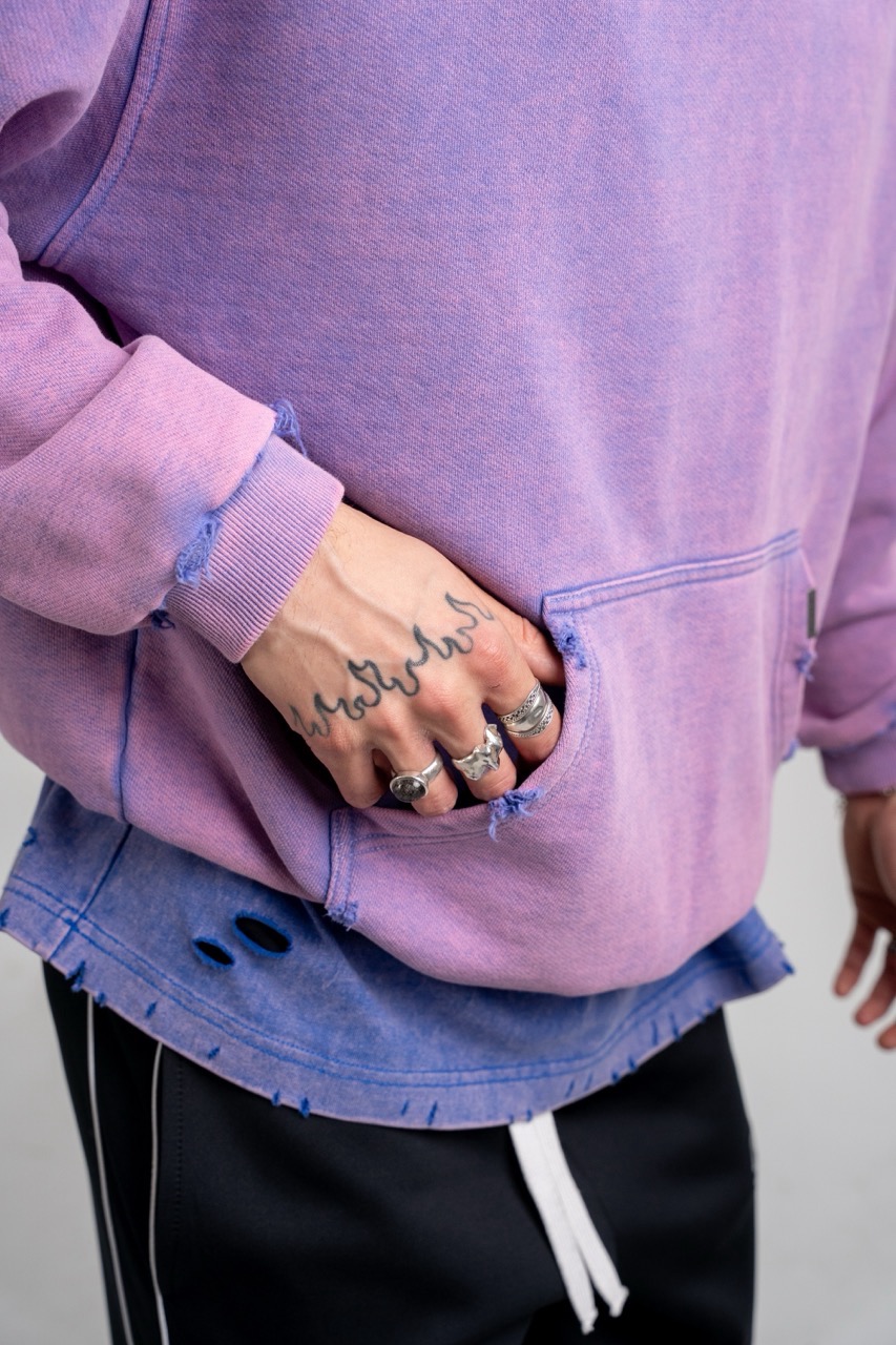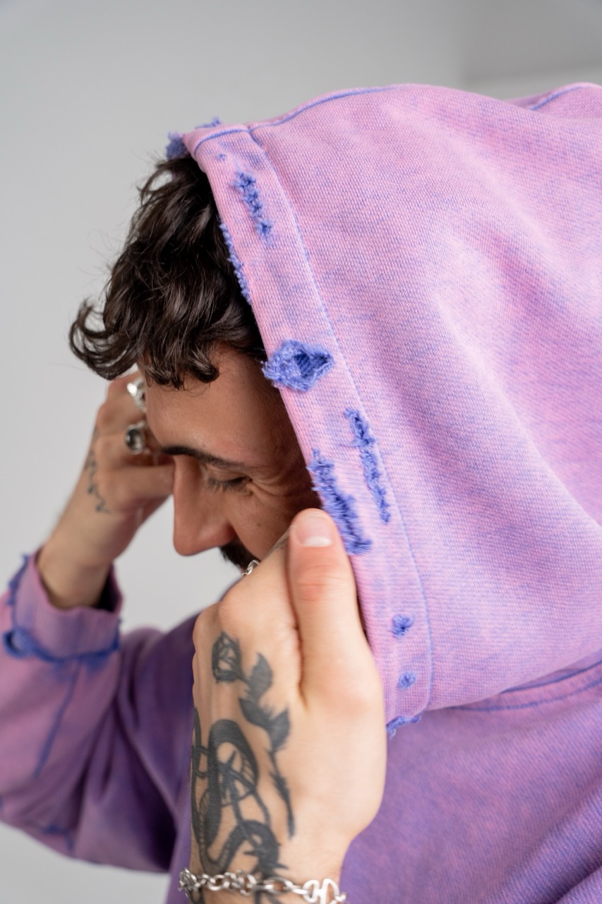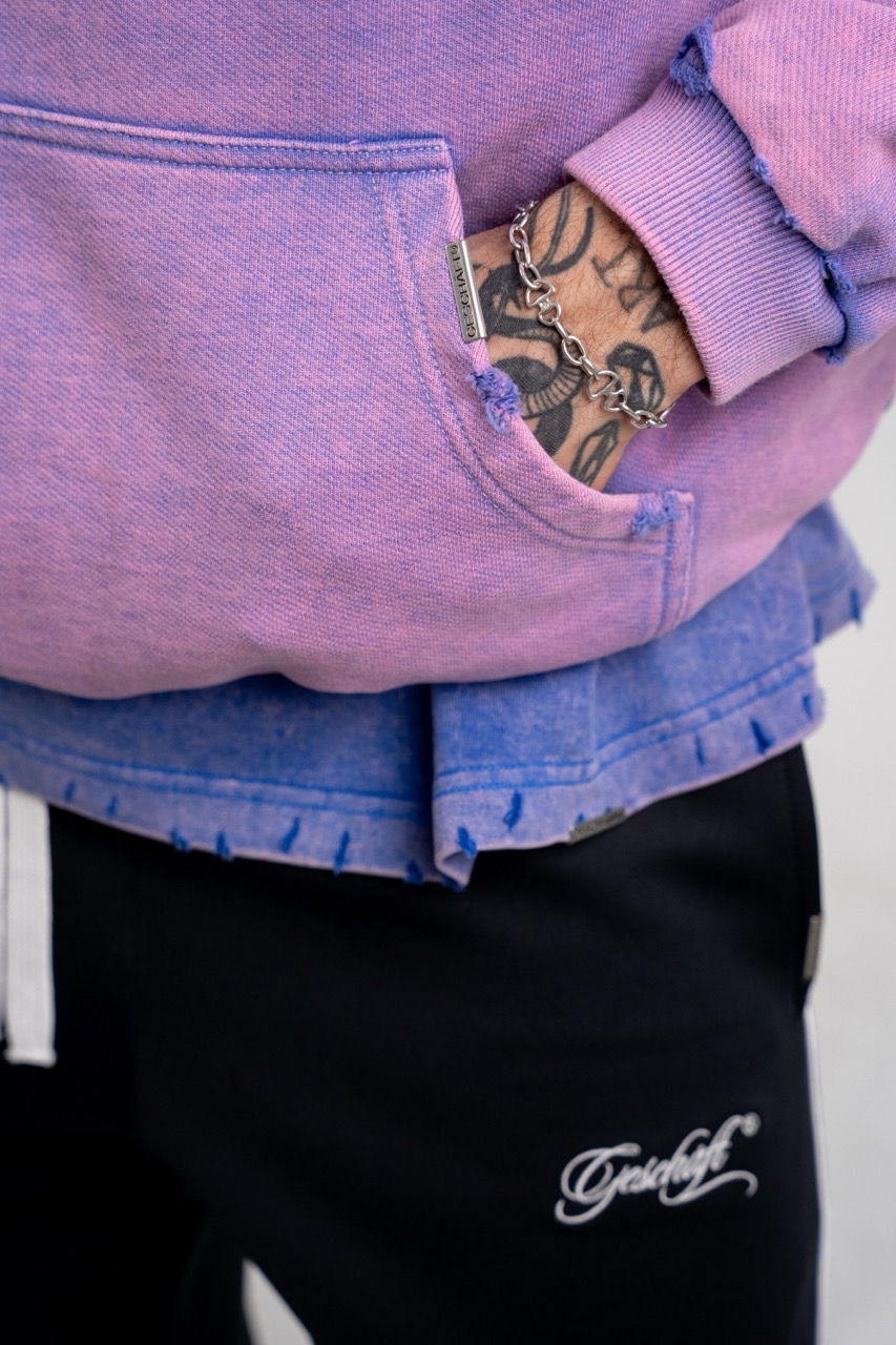 - Details: Hand-distressed edges (hood, pocket, cuffs).